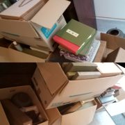 仕分けをさせていただき木箱に入っております花生、盃、茶碗など5点まとめて均一評価のグループ、その他消耗品類まとめて評価させていただいたグループ、1点にて評価できたお道具として、中村翠嵐作の花生、大徳寺の掛軸といった形にて仕分けをしました。