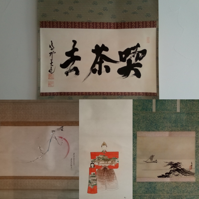 整理している最中に掛軸や、お茶道具類、その他小物類などが出てきたので一度みていただければといったご依頼の内容でございました。